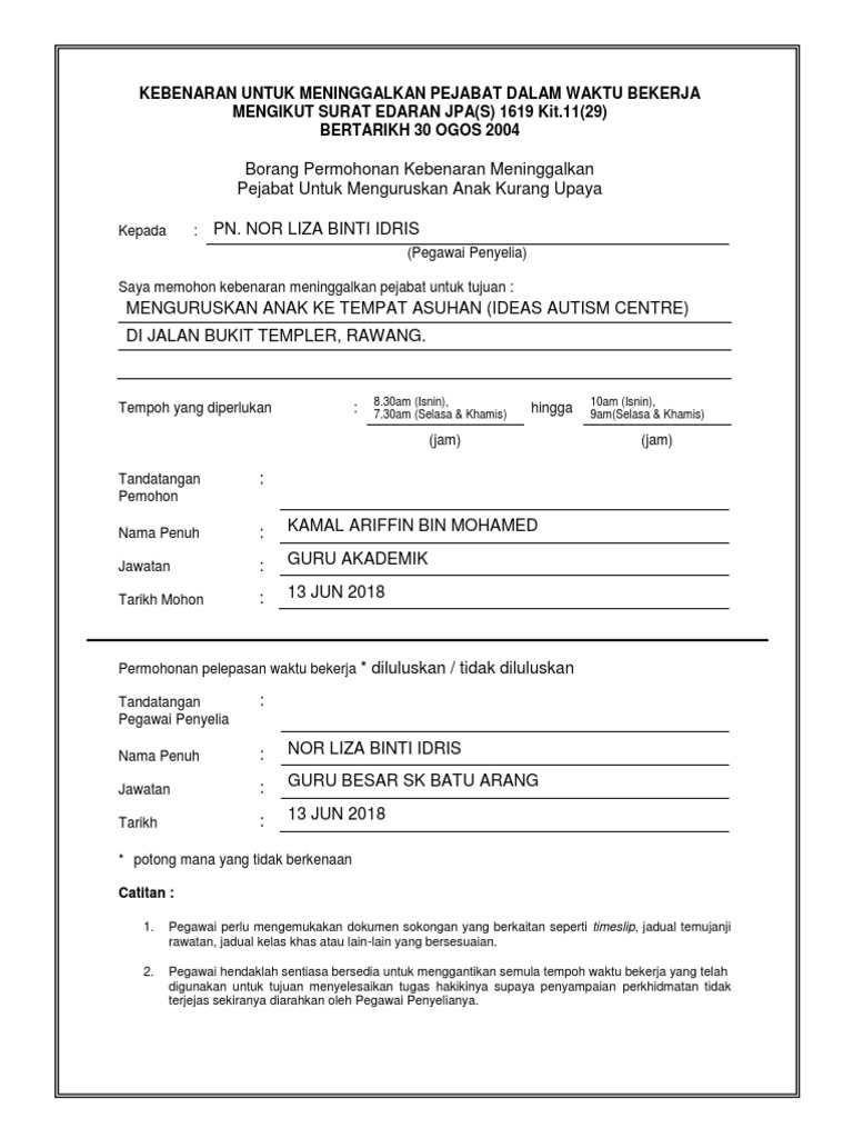 B borang permohonan time off yang telah lengkap hendaklah dikemukakan kepada seksyen pengurusan sumber manusia bkp bagi tujuan semakan sebelum dipanjangkan kepada ketua jabatan. Dan kami juga mensyaratkan time off time slip hanya 3 kali sahaja setahun so ini applicable kalau kita ada urusan peribadi nak pergi bank dsb tapi nak ambil time off time slip kena inform pegawai terlebih dahulu. Saudara saudari boleh meninggalkan pejabat dalam waktu bekerja dan hendaklah tidak melebihi 4 jam sehari. Fakulti sains kesihatan uitm pusat pengajian pengimejan perubatan borang time slip nama.