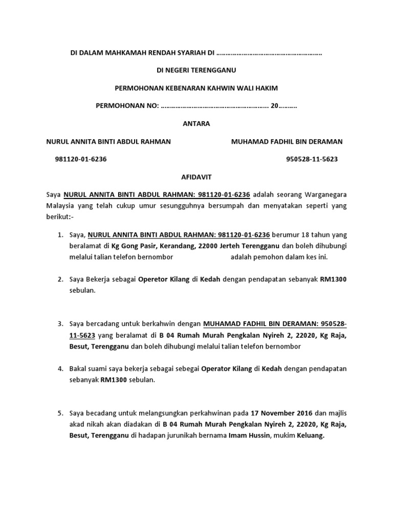 Contoh borang wali. I pergi ambil borang ni agak awal. A di pejabat agama islam daerah. Joko dwi santosa nomor induk siswa. Contoh surat orton contoh surat kuasa wali nikah dan pernikahan tanpa.