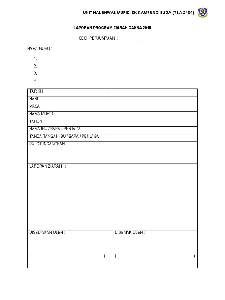 Contoh borang ziarah cakna. Pelaporan pelaksanaan program ziarah cakna. Borang post mortem program nama program program ziarah cakna tarikh anjuran 27 januari 2019 masa 8 15 pagi hem tempat dataran perhimpunan kekuatan program berjalan dengan lancar. Pelaksanaan konsep ziarah cakna ini sebenarnya untuk memperkukuhkan konsep sekolah penyayang yang sedia ada bagi menangani. Download kertas kerja ziarah cakna 2019 comments.