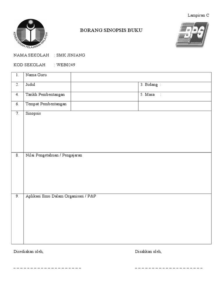 Nor aini binti muda ilmiah 3. Borang sinopsis buku nama sekolah. Nama guru anijah binti ahmad 2. Sekolah kebangsaan palong 9 f kod sekolah.