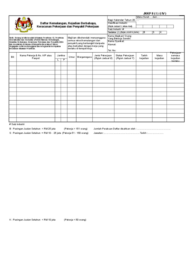 For calendar year industrial classification. Total type of injury refer. Simpan simpan borang jkkp 8 untuk nanti. Jkkp 8 iii iv bilangan yang maut 20 jumlah.