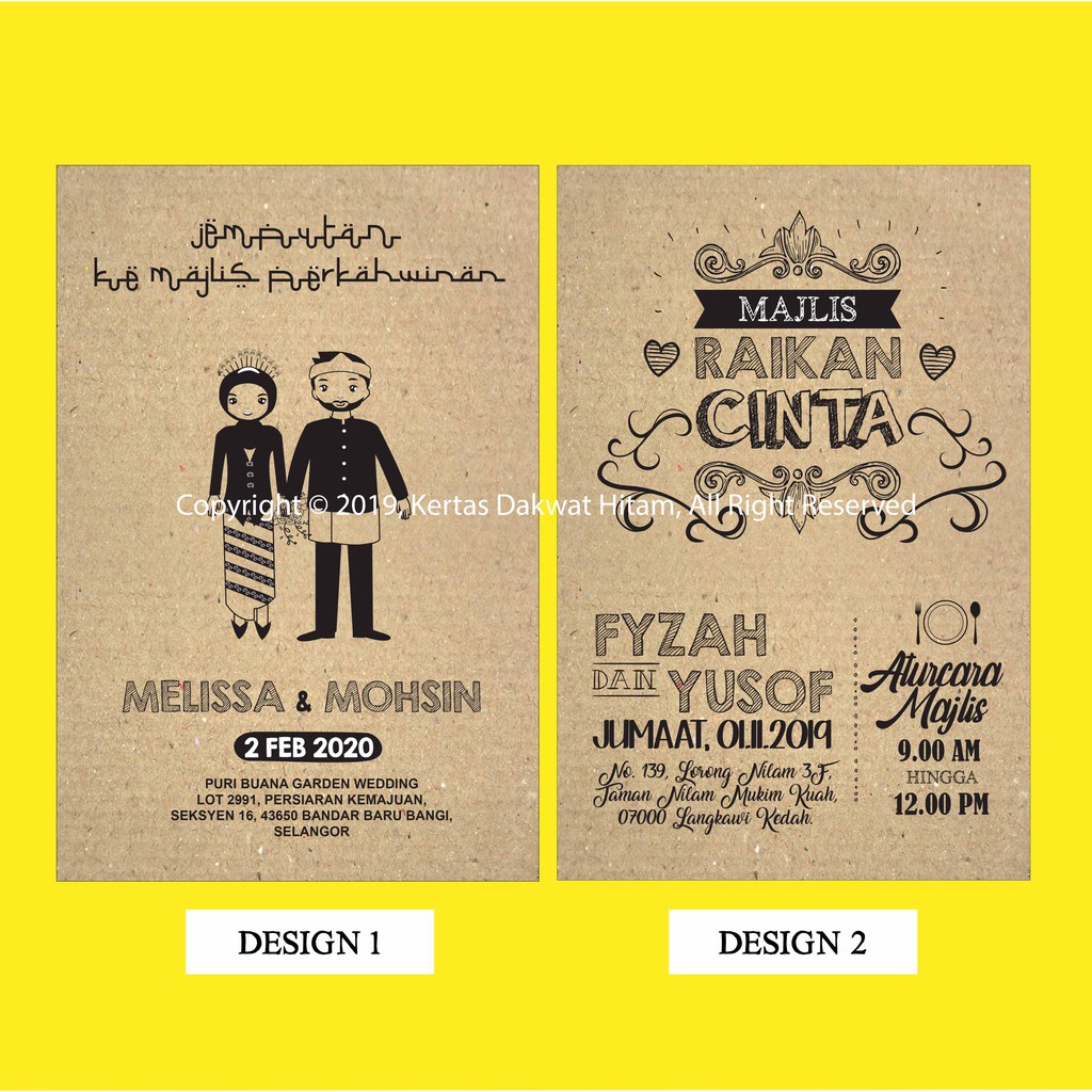 Kedai printing kad kahwin bangi. Boleh buat tempahan print online atau datang kedai kami untuk buat tempahan bunting banner printing. Selamat datang kami merupakan kedai printing bangi online yang pakar dalam menghasilkan produk cetak berkualiti. Kedai printing kami dibuka 5 hari seminggu dari isnin sehingga hari jumaat. Dapatkan rekaan terkini unik eksklusif untuk majlis perkahwinan anda.