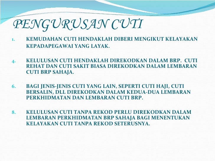 90 hari tambahan diluluskan oleh ksu. Keistimewaan yang boleh ditarik balik. Cuti tanpa gaji ctg perintah am p a 14 bab c pp 9 1991 spp 4 2009 tujuan kadar syarat diberikan atas sebab sebab persendirian yang mustahak 30 hari bagi setiap genap satu tahun perkhidmatan. 6 bulan perkhidmatan yang melayakkan.