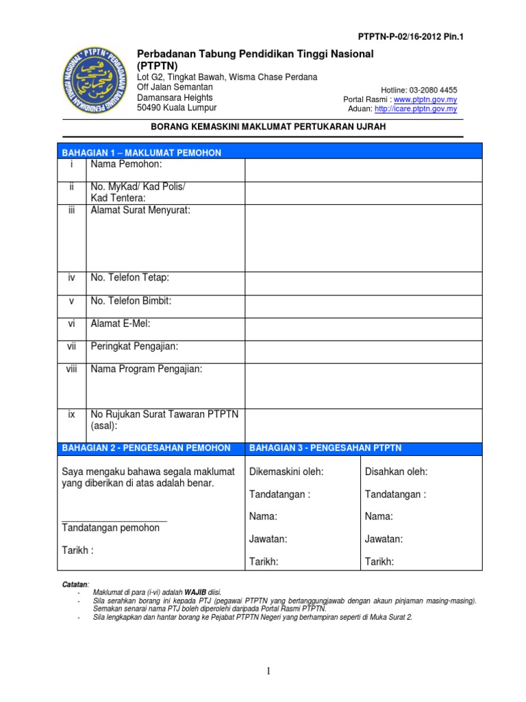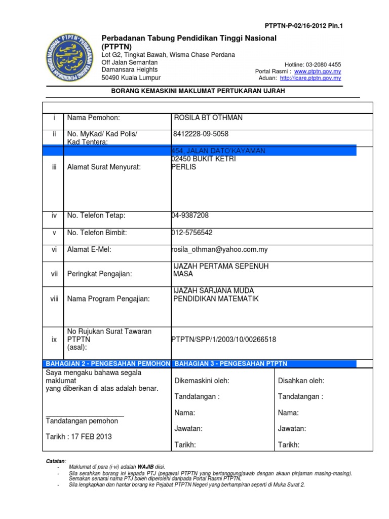 Hantar borang kemas kini maklumat ke kaunter ptptn. Peminjam akan diberikan 2 set dokumen tawaran ujrah. 03 2193 1263 e aduan. Perjanjian pinjaman pelajar perlu menyemak maklumat pada jadual pinjaman.