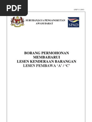 Spad Borang Permohonan Membaharui Lesen Kenderaan